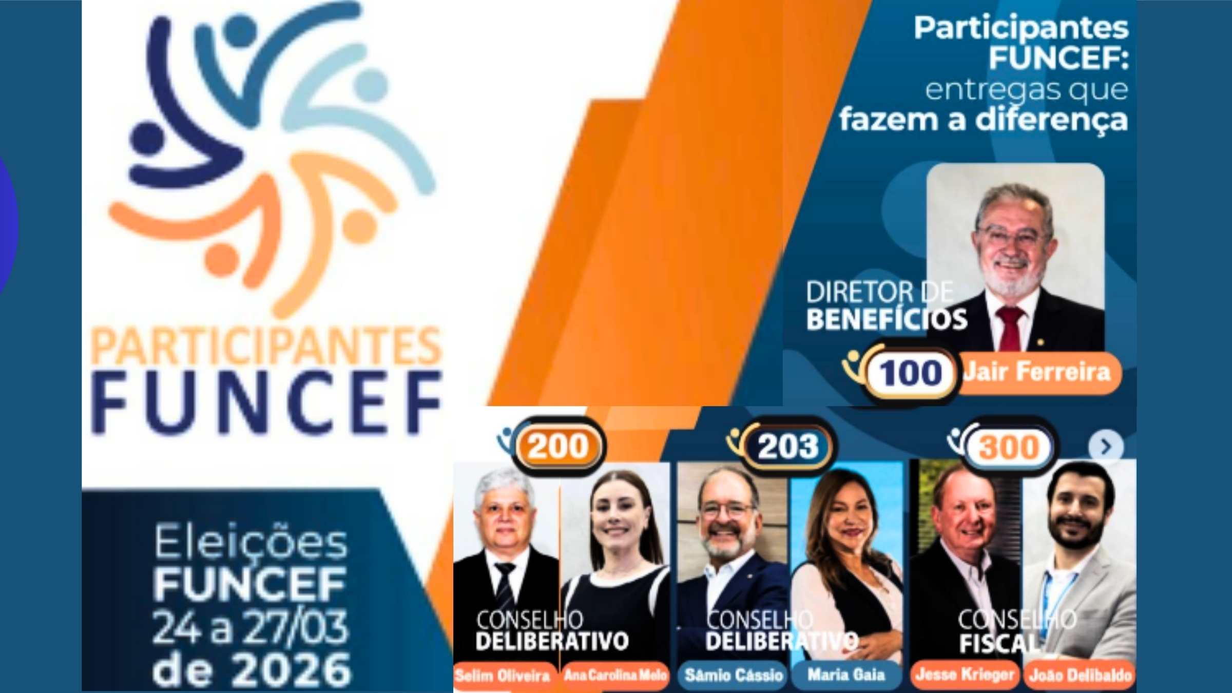 O grupo é formado pelo atual diretor de Benefícios, Jair Pedro Ferreira, e um dos membros do Conselho Deliberativo, Selim Antônio de Salles Oliveira, como candidatos à reeleição. Sâmio Cássio, atual presidente do Conselho Fiscal, concorre à segunda vaga do Conselho Deliberativo.